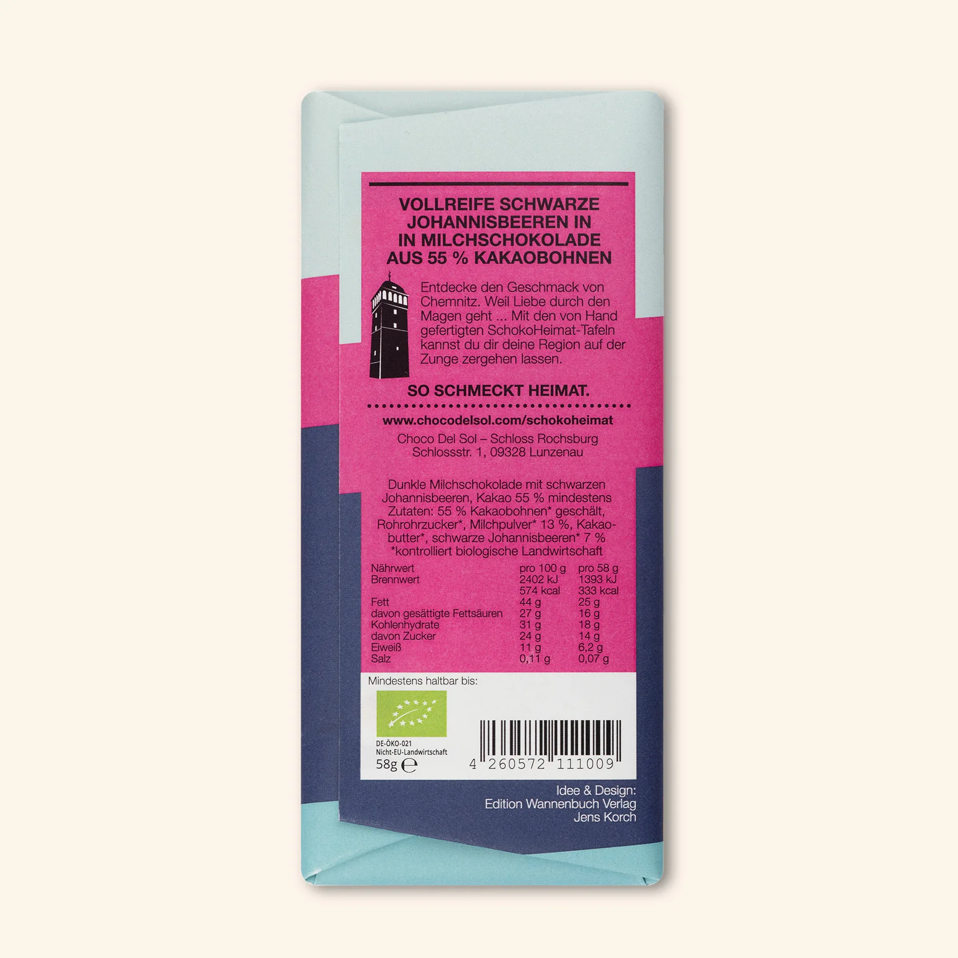 Aus der Sommerernte von Kleingärtnern stammen die aromatischen Johannisbeeren, die dieser Schokolade ihre fruchtige Tiefe verleihen. In Kombination mit weicher, karamelliger Milchschokolade entsteht eine harmonische Komposition, die Ruhe, Natur und Genuss verbindet.